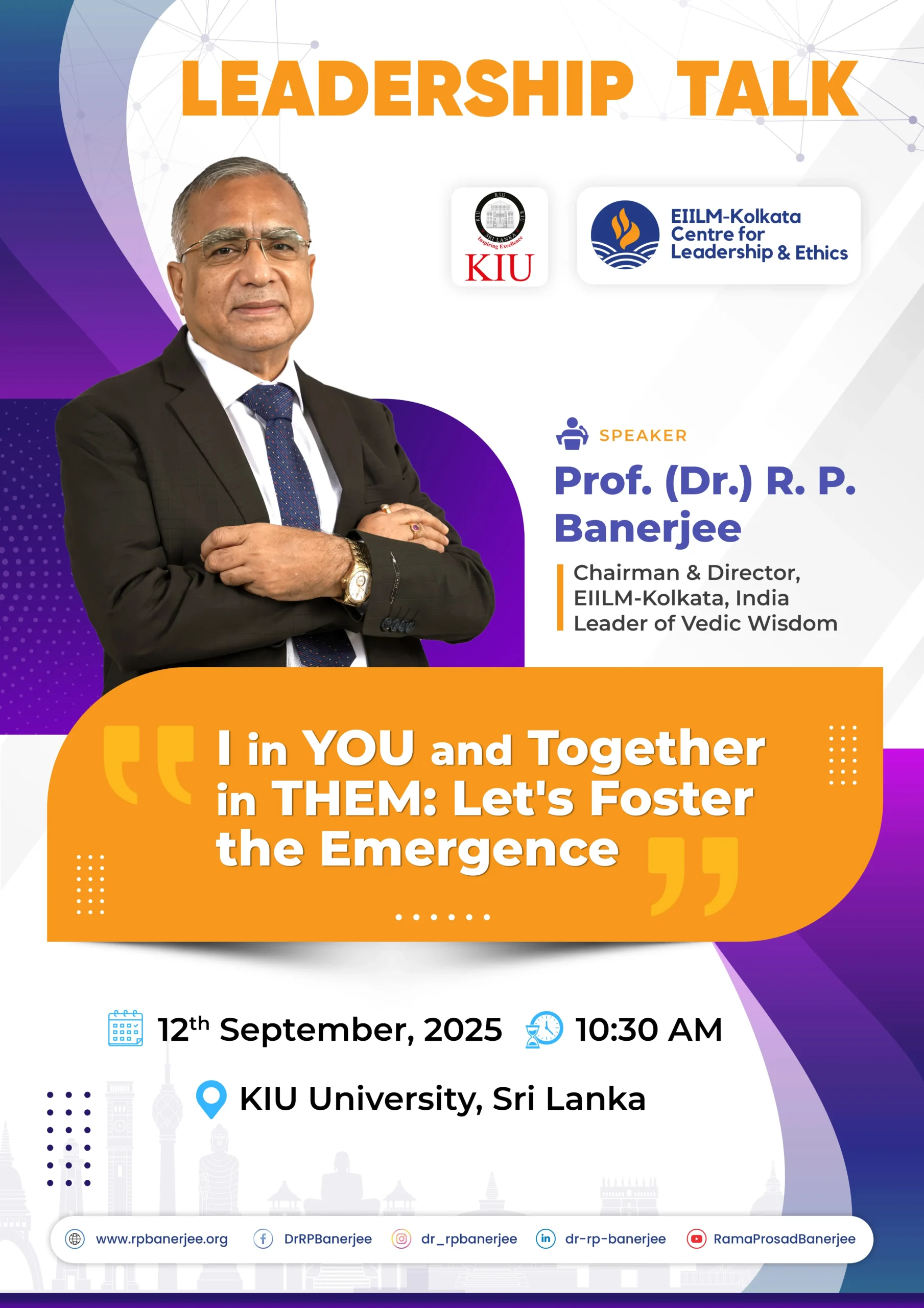 Leadership Talk on the theme ” I in YOU and Together in THEM: Let’s Foster the Emergence, on 12 Sept 2025, 10:30 AM, KIU University, Sri Lanka.