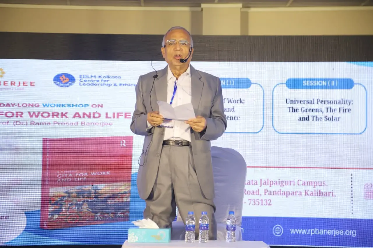 Sharing insights with the audience in a Day- long Workshop on “Gita for Work and Life” at EIILM-Kolkata Jalpaiguri Campus
